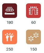 La disposició a la italiana de la sala petita permet un aforament de fins a 180 persones.
