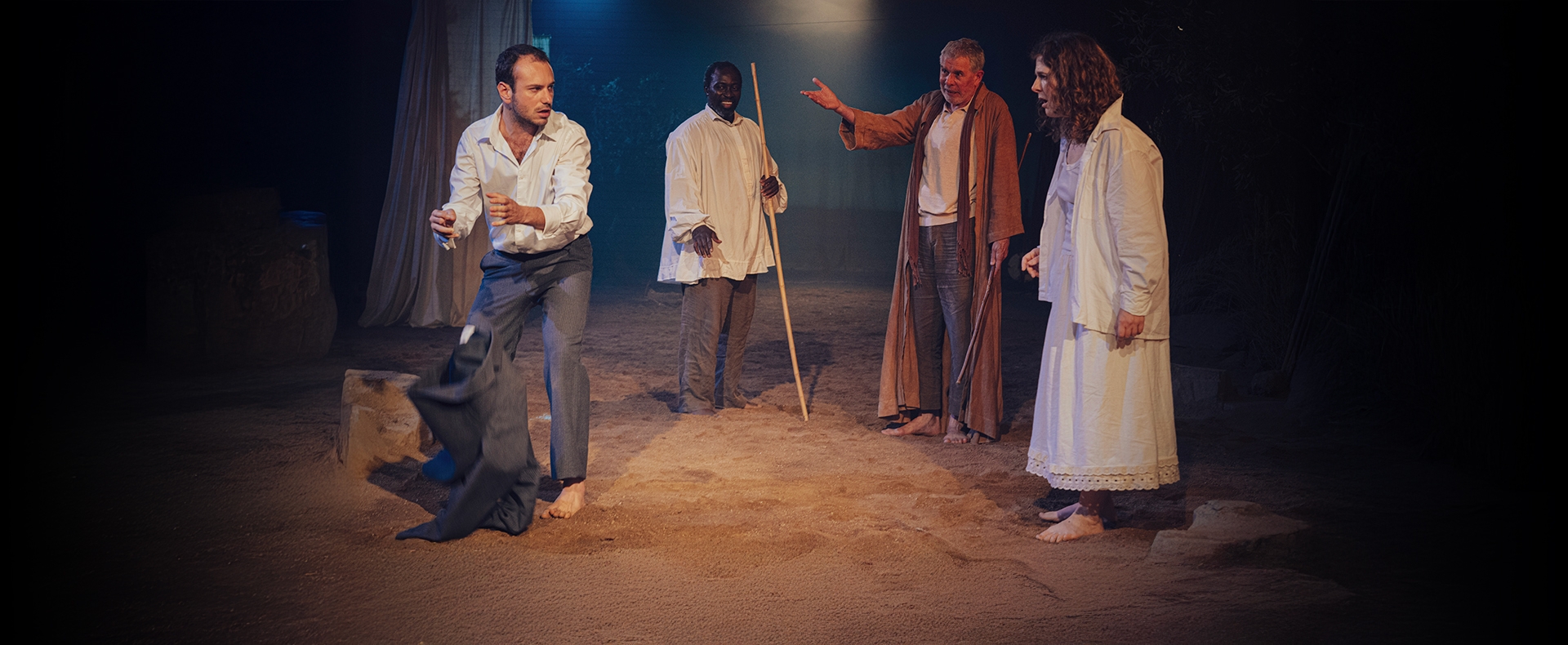 Comença així una de les històries més grans de Shakespeare, la darrera en cronologia i maduresa d’edat que ha arribat fins als nostres dies. L’illa serà l’escenari de bufons, reis, d’enamorats, de nobles i de borratxos, rodejats de personatges que viuen només en la ficció mentre aquesta es fa realitat en el teatre.