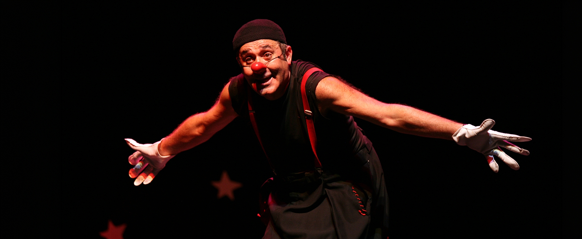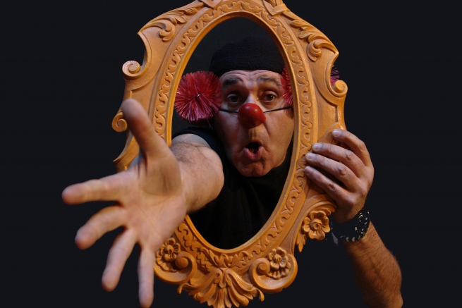 Ens oferirà un espectacle que combina el llenguatge del clown, la ironia de bufó amb la comunicació directa del showman.