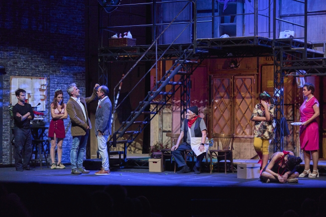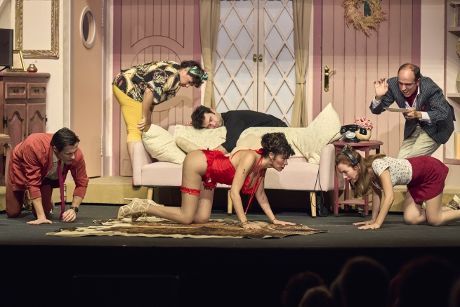 Hi ha comèdies que mai no passen de moda, veritables clàssics que periòdicament mereixen un espai en les nostres cartelleres. És el cas de ‘Pel davant... i pel darrera’ (‘Noises off’) i escrita el 1982 per Michael Frayn que, en versions diverses, s’ha pogut veure en més de cinquanta països i ha estat traduïda a vint-i-vuit idiomes, i de la qual es fan reposicions continuades tan al West End com a Broadway. Ara, al Kursaal, podrem tornar a gaudir d’aquesta obra esbojarrada en una nova versió d’Alexandre Herold i Paco Mir que compta amb un repartiment de luxe.